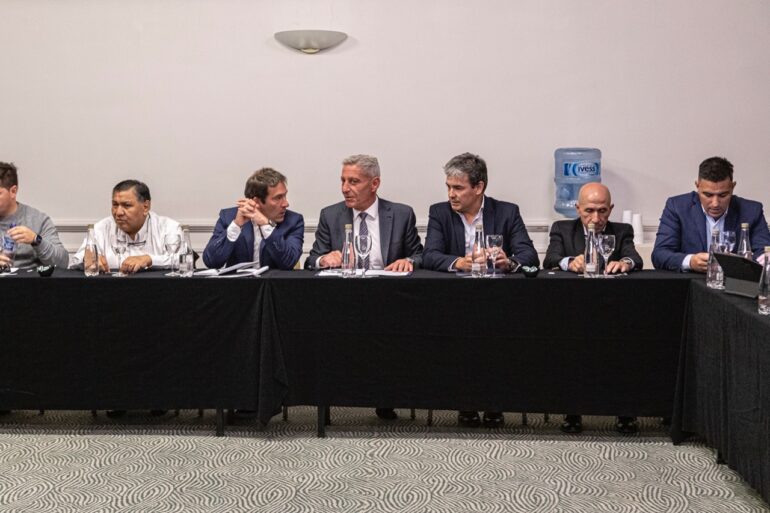 De la reunión participaron además del intendente Luque, el gobernador Mariano Arcioni, el ministro de Hidrocarburos, Martín Cerdá; el intendente de Sarmiento, Sebastián Balochi; referentes de las operadoras petroleras; y los dirigentes de los principales gremios petroleros de base y jerárquicos de Chubut y Santa Cruz.