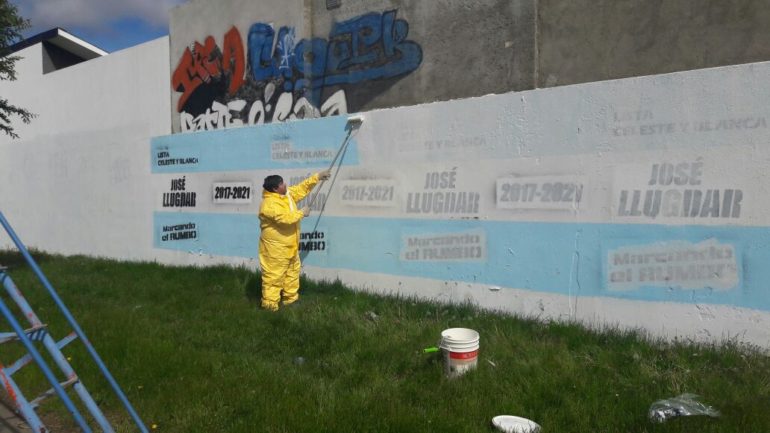El trabajo del brazo político de la Institución que conduce José Llugdar no se detiene y, además de las tareas solidarias a las que nos tiene acostumbrados, también devuelve a la vía pública el aspecto original previo a las pintadas proselitistas, en este caso en Río Gallegos.
