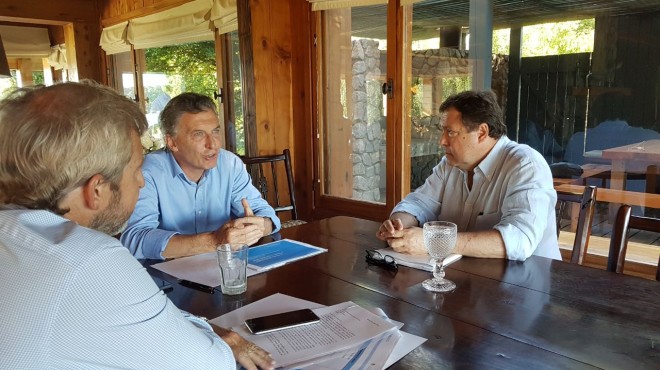 La reunión -que superó la hora y media- se realizó en el barrio privado Cumelén, a tres kilómetros de La Angostura. Un tercer participante fue el ministro de Interior, Rogelio Frigerio, activo en los diálogos y, en especial, en el repaso de números.