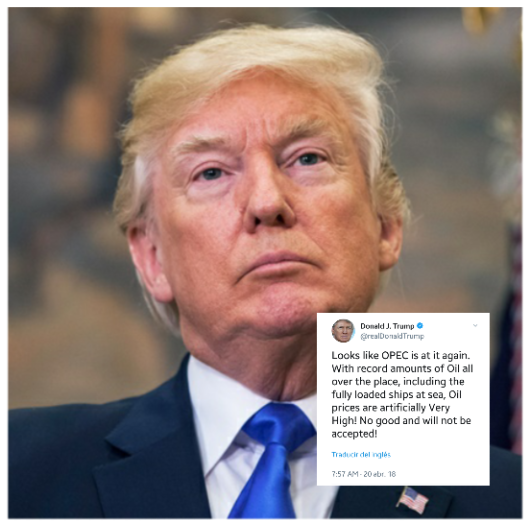 (Depetroleo-Gonzalo Díaz). El presidente de Estados Unidos, Donald Trump, cargo contra la OPEP a través de Twitter (su red social favorita), señalando que será su próximo objetivo.