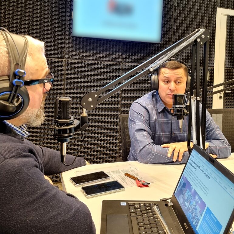 Luis Villegas fue el primer invitado en los flamantes estudios de la novel emisora situada en el edificio del Centro Recreativo y de Salud que posee la Institución en la esquina de Bouchardo y Saavedra de Comodoro Rivadavia, Chubut, marco en el cual mencionó en primera instancia su gratitud “hacia quienes día a día están detrás de todo lo que hacen Sindicato, Mutual y Fundación y que fueron pioneros y fundadores y han estado siempre presentes acompañando”.